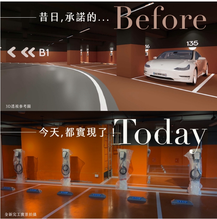 領先業界五年,持續打造未來建築標準,在多數同業仍停留於「預留管線」階段時,美勝美將 「全配備電動車充電設備」設定為唯一規格與標準。從住宅到商辦,所有停車位,皆具備完整 電力配置與智慧系統。不需等待未來,我們讓未來提前到來。這是美勝美堅持的標準,也是我 們對建築遠見的實踐。